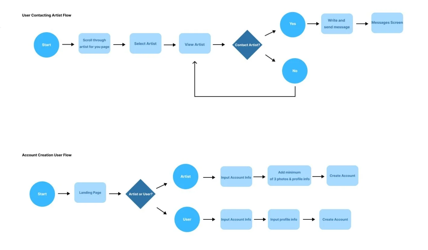 I conducted research on social apps like Instagram and Tinder, as well as service-based platforms like Thumbtack, to find a way to blend the best of both worlds—creating a tool that not only showcases talent but also makes it easier for creatives to connect and work together.